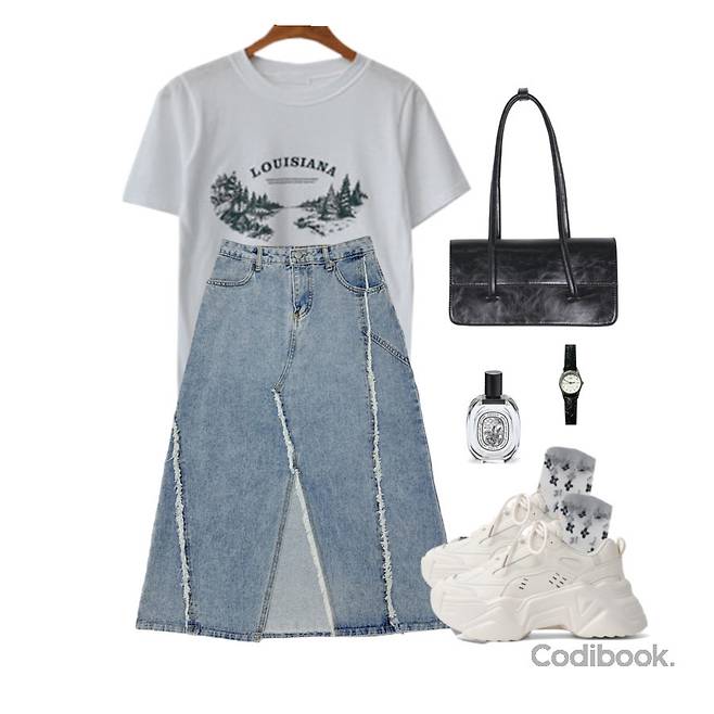 데님 롱스커트는 매 시즌 인기 있는 아이템 중 하나인데요, 아무거나 매치해서 코디해도 예쁘고 활동할 때 편한 매력이 있답니다!
