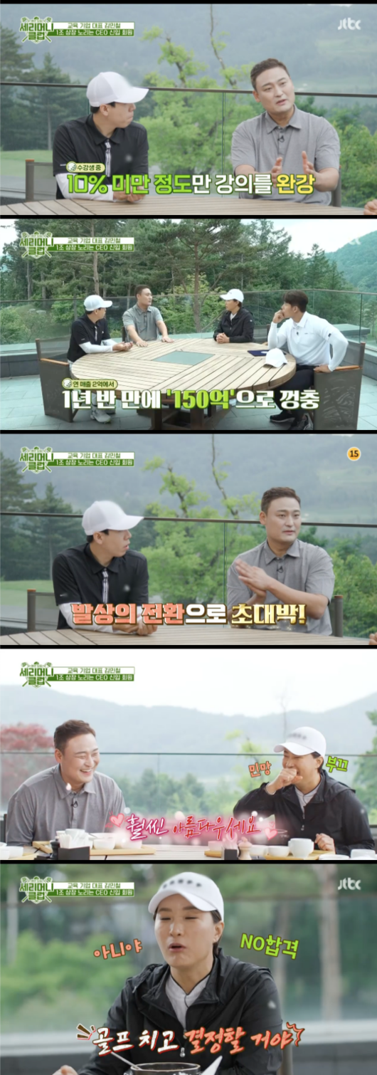 30일 방송된 JTBC 신규 예능 ‘회원모집-세리머니 클럽’(이하 ‘세리머니 클럽’)에는 연 매출 150,억 영어교육 기업 대표 김민철이 신입회원 지원자로 등장했다.