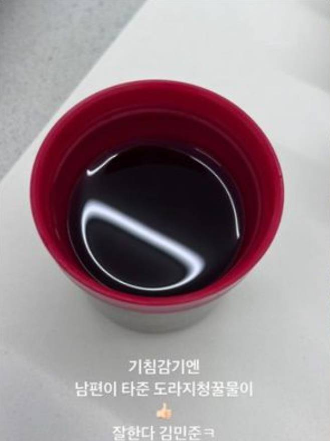‘지드래곤 누나’이자 배우 김민준의 아내로 잘 알려진 패션 사업가 권다미는 지난 21일 자신의 SNS에 "기침 감기엔 남편이 타준 도라지청 꿀물이. 잘한다 김민준"이라는 멘트와 함께 한 장의 사진을 공개했는데요.