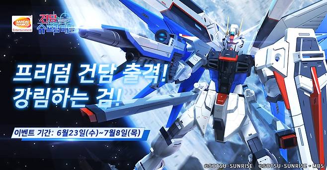 반다이남코엔터테인먼트는 서비스하는 모바일 액션 배틀 게임 '건담 슈프림 배틀'에 신규 기체 '프리덤 건담'을 추가했다.