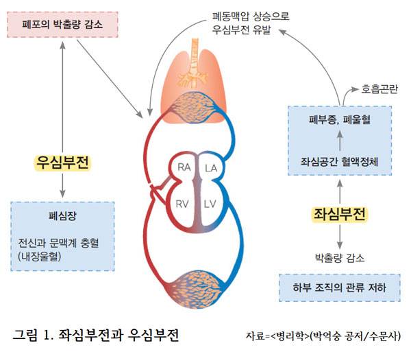 왼쪽 심장이 부으면 전신에 충분한 혈액을 보낼 수 없어 문제 된다.
