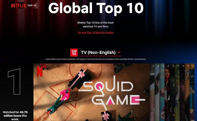 최근 몇 주 동안 넷플릭스 이용자가 가장 많이 시청한 비영어 프로그램 상위 6편 가운데 4편이 한국 콘텐츠인 것으로 나타났다. 디즈니플러스가 지난 10월 아시아·태평양 지역에 선보인 28개 신작 오리지널 콘텐츠 가운데 7편이 한국 작품이다.