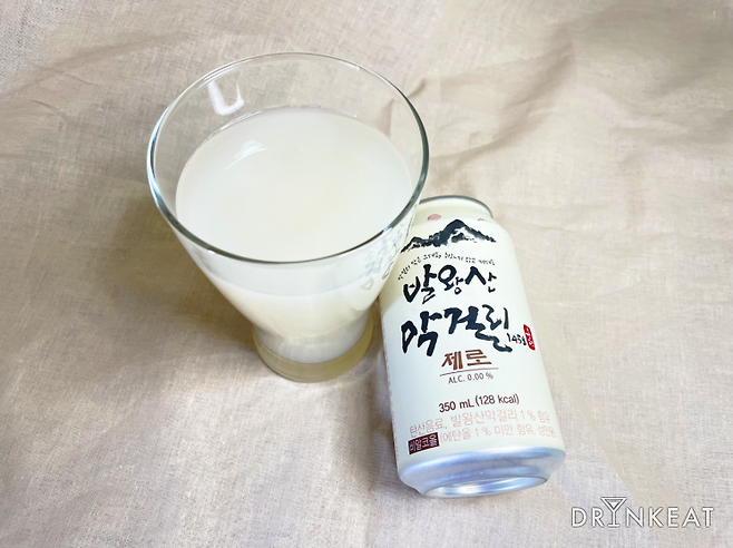 맛 역시 막걸리보다는 밀키스나 암바사 같은 밀크 소다에 가까웠어요. 입 안을 감싸 안는 듯한 부드러운 달콤함이 느껴지지만, '비알콜 막걸리'라는 이름이 무색할 정도로 막걸리의 존재감은 미미했죠. 단 맛은 확실하게 느껴지나 막걸리 특유의 걸쭉한 맛은 찾아볼 수 없어 비알콜 막걸리를 마시고 있는 것인지, 일반 탄산음료를 마시고 있는 것인지 혼란스러웠어요. 비알콜 주류의 매력은 취하지 않으면서도 술의 맛은 제대로 느낄 수 있다는 것인데, 발왕산 막걸리 제로는 술 맛이 생생하게 재현되어 있지 않아 아쉬웠습니다.
