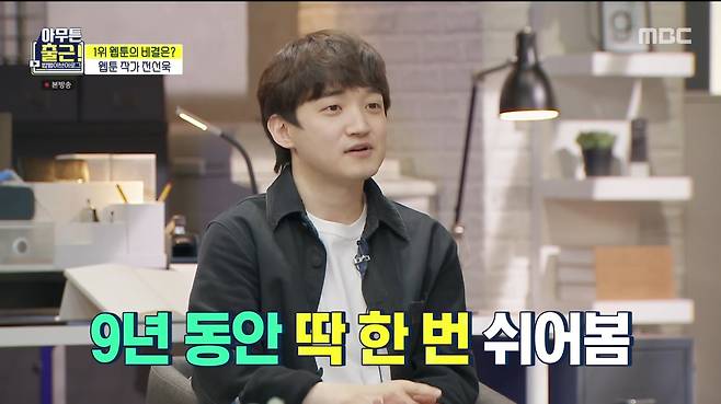 전선욱은 "9년 동안 매주 마감의 압박을 받았다. 잦은 밤샘과손목 건강 이상 등 체력적으로 부담이 된다"면서도 "만화 그리는 걸 사랑하지 않았다면 이렇게 할 수 없었을 거다. 아무리 아파도 휴재는 할 수 없었다"고 책임감을 드러냈다.