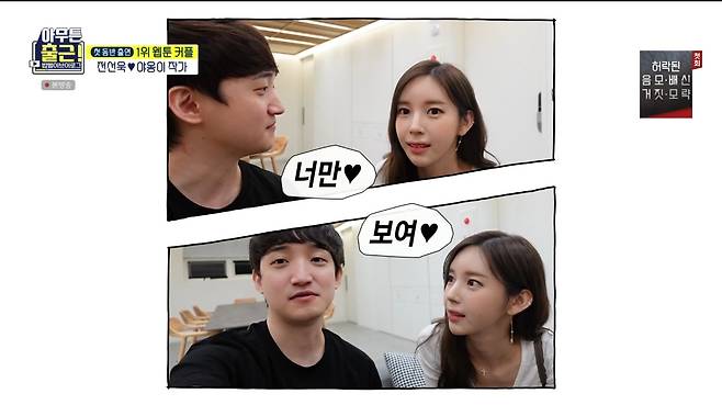 '토요일의 남자' 전선욱과 '화요일의 여자' 야옹이는 바쁜 와중에 시간을 만들어 데이트를 즐겼다. 두 사람은 서로를 빤히 바라보며 눈에서 꿀이 뚝뚝 떨어지는 애정을 드러냈고, 함께 해외여행을 가고 싶다면서 알콩달콩 예쁘게 사귀는 모습을 보였다.