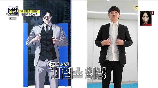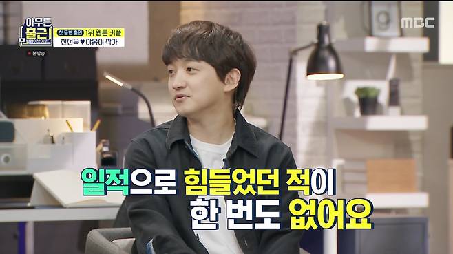 누구나 한번쯤 겪는 '슬럼프'에 대해서도 그는 "일로는 힘들었던 적이 한번도 없다"면서 로봇 면모를 보여 웃음을 자아냈다. 어린 시절의 꿈 만화가를 이뤄낸 전선욱은 "지금도 만화 그리는 게 재미있다. 직업 만족도는 200% 최상"이라면서 "만화는 나의 운명"이라고 전했다.