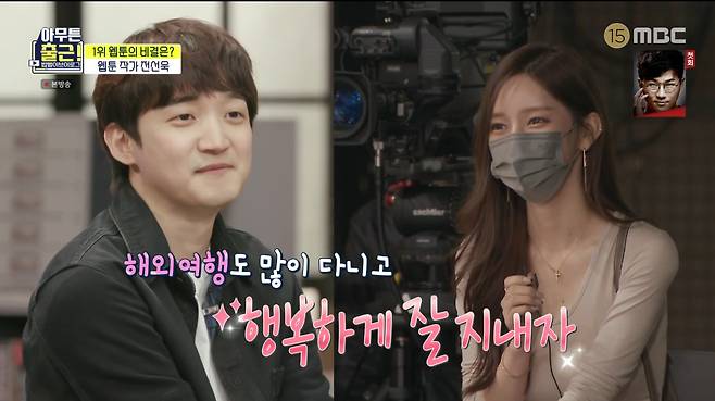 26일 오후 방송된 MBC '아무튼 출근!’에서는 밥벌이 9년 차 웹툰 ‘프리드로우’ 작가 전선욱과 여자친구 야옹이가 함께한 핑크빛 일상이 그려졌다.