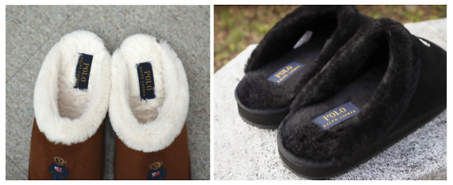 폴로의 KAYLEIGH SCUFF 슈즈는 포근한 외관과 따뜻한 보온성을 지니고 있어