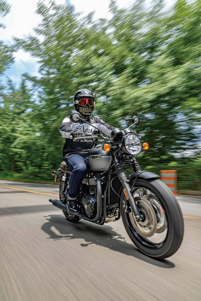 시트는 저속에서 푹신하게만 느껴졌는데 막상 제대로 달려보니 일정 이상 눌리지 않고 불규칙한 노면을 읽어낼 수 있도록 설계됐다. 새롭게 적용된 브레이크 시스템은 잦은 제동에도 꾸준한 성능을 유지한다. 마찰력이 뛰어난 타이어가 장착되지 않았음에도 차량 자체의 무게가 상당하기 때문에 쉽게 그립을 잃지 않고 과도한 제동이나 가속에는 ABS와 트랙션 컨트롤이 개입하면서 안정적인 자세를 잡는다. 초반의 강력한 토크감은 일정 회전수를 넘어가면 급격하게 떨어져 아쉽지만 고회전에서 느껴지는 색다른 진동과 배기음이 매력적이다. 일반적으로 토크 위주의 클래식 바이크는 높은 회전수를 사용했을 때 다소 불쾌한 경우가 있다. 하지만 본네빌 T120은 극단적인 고회전 영역에서도 또 다른 재미를 선사한다.