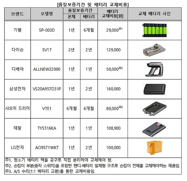 "무선청소기 배터리 교체 비용, 최대 5.5배 차이"