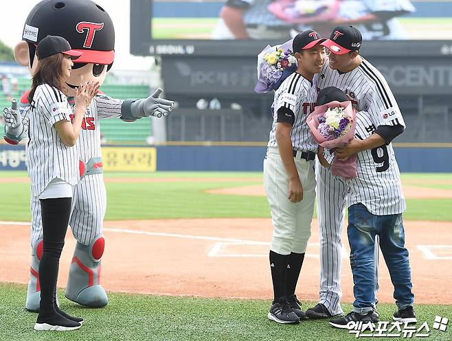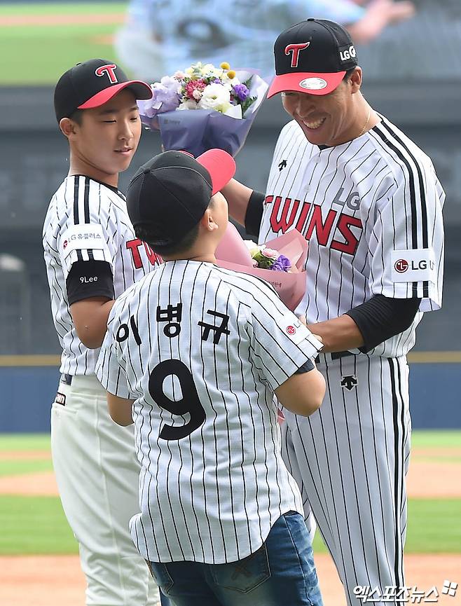 이날 경기에 앞서 이병규가 시구자로, 첫째 아들 이승민 군이 시타자로 나섰다. 그는 “마운드에 한번도 안서봤다. 아들을 시구를 시키고 마지막 타석이라고 생각하고 시타를 할까도 고민을 했는데, 타석에 7000번 이상 들어섰으니 마운드에 한 번 서고 싶었다”고 말했다.
