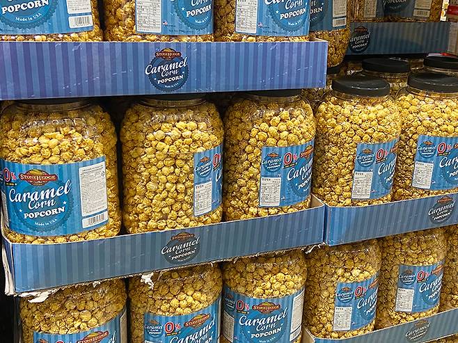 이마트 트레이더스의 매력은? 바로 대용량 간식! 아무런 생각 없이 계속 해서 손이 가는 인간사료의 자격을 갖춘 제품이랍니다. 영화관에서 먹는 캬라멜 팝콘과 흡사한 맛으로, TV를 볼 때나 독서할 때 생각나는 맛입니다. 특히 영화관 팝콘은 캬라멜이 듬성듬성 묻어 있기 때문에 캬라멜이 잔뜩 묻어 있는 부분만 골라 먹어야 할 때가 있는데, 이 팝콘은 한 통 가득 모든 알갱이에 캬라멜 코팅이 두껍게 쌓여 있어서 너무나도 만족스러웠어요. 다만 단 음식을 싫어하는 분들은 살짝 조심! 당 마니아들에게만 추천합니다.