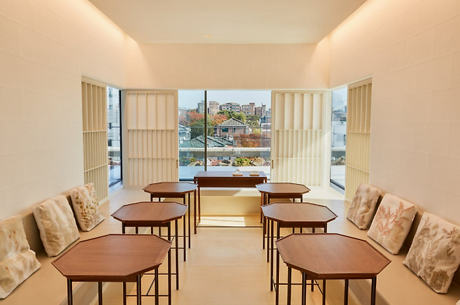 안팎의 경계, 시간의 경계, 건축양식의 경계 등 이곳에는 다양한 경계와 연결점이 존재한다. 브랜드를 만들어가는 과정도 비슷하다. 다양한 지점에 경계와 연결점이 있으며 이렇듯 성격이 상반된 요소를 결합해 아름다운 무언가를 만드는 것은 설화수가 추구하는 가치와 맞닿아 있다. 무엇보다 설화수 북촌 플래그십 스토어는 고객과 브랜드의 경계를 허무는 플랫폼이고자 했다. 유리창 너머를 바라보는 시선이 한옥에서 양옥까지 관통하도록 디자인한 것, 한옥 내부의 모든 가구와 오브제를 휴먼 스케일보다 낮은 눈높이로 배치한 것 역시 비슷한 맥락이다. 서로 다른 두 건축물이 중첩되며 만들어내는 장면에서 설화수가 추구하는 조화와 균형을 엿볼 수 있다.