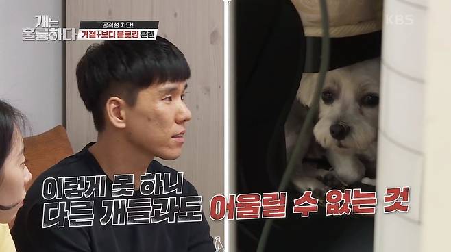 "머리가 좋은데 안 한단 말이에요. 집에서 예절 교육과 사회화 교육을 많이 해야지 그렇지 않고 예쁘니까 귀하게만 키우면 사회화된 기회를 못 얻는 개들이 꽤 있어요." (강형욱)