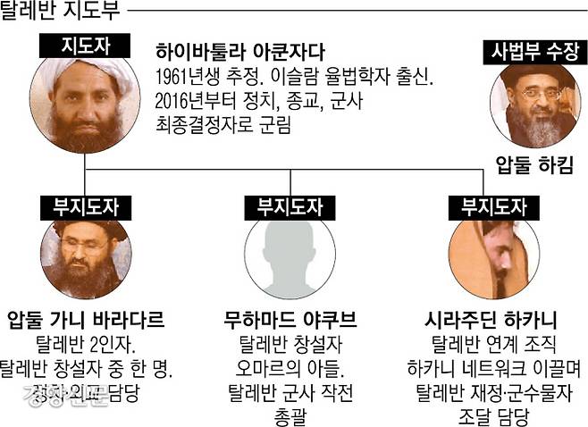 탈레반 2인자이자 ‘탈레반의 얼굴’로 불린 압둘 가니 바라다르는 지난 17일 이미 아프간에 입국했다. 1994년 모하마드 오마르와 함께 탈레반 운동을 창설한 바라다르는 미군에 대한 작전을 지휘하는 등 군사 전략자이자 최고 사령관 역할을 했다.