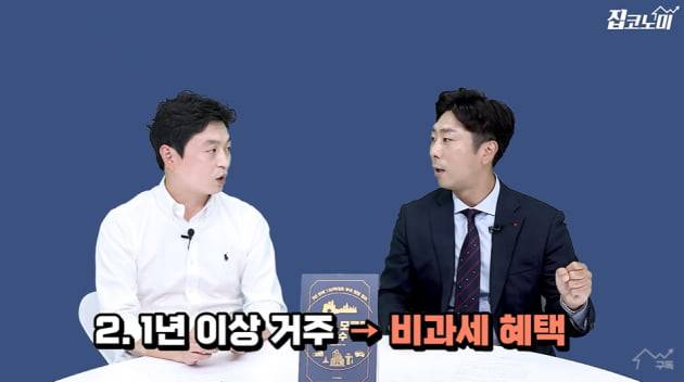 최소 3~4년이 걸리니깐 이 1-2-1도 1-2-3로 바꿔주는 거구요. 그리고 3(쓰리)가 넘었다고 해도 비과세를 해주는 이유는 이 공사기간이 뭐 시공사의 사정으로 인해서 조금 늘어나거나 아니면 부동산 시장이 안 좋아서 공사가 중단됐다가 다시 되거나 이럴 때는 그거는 부장님의 잘못이 아니라. “나는 새 아파트에 들어가서 살려고 했다. 투기가 아니다”라는 걸 정부에서 인정해주니까 3년이 지나도 입주만 해서 2년 안에 입주하라는 것은 전세를 주지 말라는 뜻이구요. 2년 안에 전 세대원이 입주를 하고 그리고 1년 이상 살면 당신은 이 입주권을 산 게 투기가 아니라는 게 모든 조건에서 만족하니까 이 입주권을 비과세를 해주게 되겠다 라는 맥락이에요.