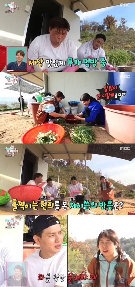 이때 홍현희는 파가 매운 탓에 눈물을 글성였고, 제이쓴 어머니는 "맵냐. 일 많이 안 시키겠다. 울지 마라. 시집살이 안 시키는데"라며 다독였다.
