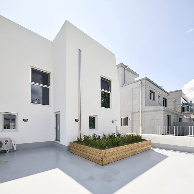 당장 예비 임차인들의 평가가 좋습니다. 닭장처럼 다닥다닥한 빌라만 봤는데 옆이 시원해서 좋다고 합니다. 건축주도 건물 사이가 마음에 들어 안쪽 공터에 임차인들과 이웃들을 위한 마당을 꾸미고 있습니다. 한발 더 나아가 1층 근린생활시설에 빨래방을 건축주가 직접 운영합니다. 이 역시 언제 여냐 빨리 열어라, 호응이 좋습니다. 우리도 나름대로 대지 앞 열린 골목에 대답하는 적당히 열린 건물을 지을 수 있어 만족스럽습니다. 건물 규모를 줄여 손해 본 사람은 없는 것 같습니다.