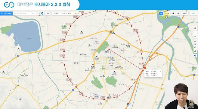 “3km를 벗어나서 더 싼 땅을 사면 수익률이 더 크지 않을까요?”라고 생각할 수도 있습니다. 하지만 반경 3km는 생각보다 넓습니다. 3km를 벗어난 지역까지 개발이 되려면 꽤 오래 걸릴 수도 있고요. 장기간 보유해야 한다는 뜻이지요.