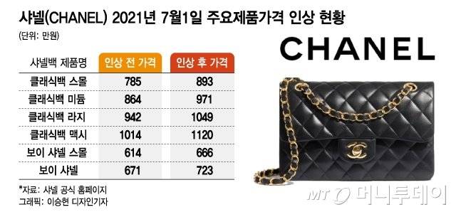 샤넬코리아는 지난 7월1일 클래식백과 보이백, 가브리엘백 등 주요제품의 가격인상을 단행했는데 인상 전 864만원이던 샤넬 클래식백 미듐 사이즈는 인상 후 971만원이 됐다. 이에 따라 당근마켓 등 중고거래 플랫폼에서도 클래식백 미듐 가격은 즉시 970만원대로 껑충 뛰었다. 샤넬 인기제품은 중고시장에서도 가격이 결코 하락하지 않기에 패션잡화가 아닌 일종의 '안전자산'으로 그 가치가 변모한 것이다.