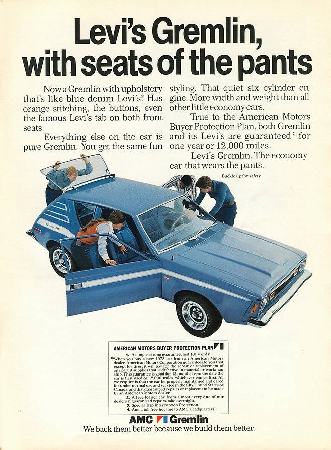1970년 GM의 호적수였던 AMC의 대표적 소형차는 그렘린(Gremlin)과 호넷(Hornet)를 빼놓을 수 없다. 그렘린은 북미 최초 서브콤팩트(Subcompact) 차로 당시 AMC 모델 중 가장 저렴하고 연비가 좋았다. 파워트레인으로는 3단 수동변속기와 V8 5.0L 엔진을 채택했고 오렌지색 스티칭과 리바이스와 협업으로 제작한 데님 시트로 소비자의 사랑을 받았다. 이 차는 내구성과 안정성 높은 주행으로 1970년대에 가장 인기 있던 AMC의 대표 모델이었다.