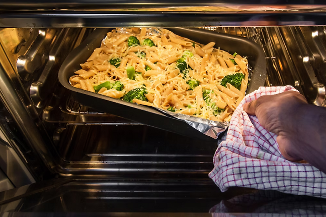 오븐은 내부 공기를 뜨겁게 달궈 음식의 겉부터 안쪽까지 천천히 익히는 방식으로 조리를 하는데요. 전자레인지는 내부를 데우는 것이 아니라 마이크로파가 음식에 침투하여 데우기 때문에 내부 공기가 달궈지지는 않습니다.