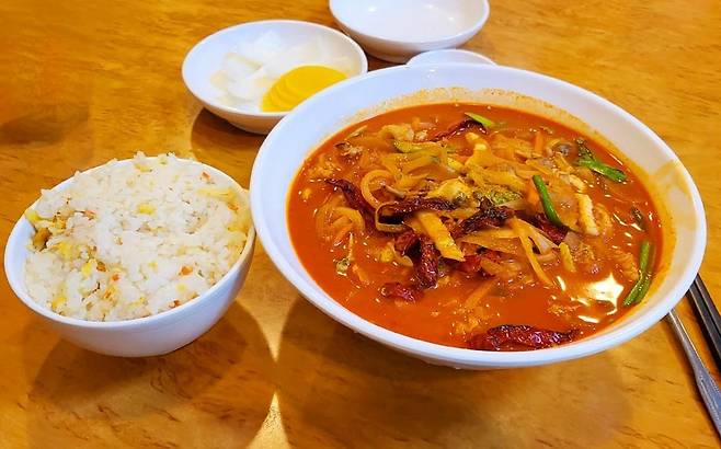 ▲후기(식신 블링블링요니): 고추 짬뽕밥을 주문해도 볶음밥과 함께 주는데 저는 면도 항상 같이 먹고 싶어서 고추 짬뽕 + 볶음 공깃밥 조합으로 먹어요. 고추 짬뽕은 국물 들어가는 순간 바로 해장 되는 느낌! 진짜 막혀있던 속이 뻥 뚫리면서 술이 한 번에 바로 깨는 느낌입니다. 면을 살짝 남겼을 때 밥 말아서 숟가락으로 같이 먹고 나면 그 날 저녁까지도 배불러요. ㅎㅎ