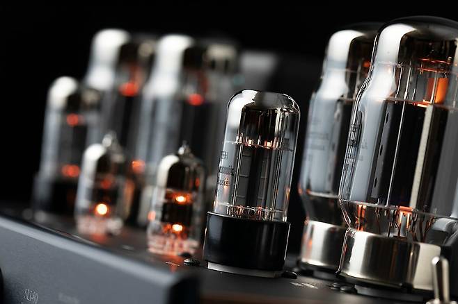 트랜스 앞쪽에는 진공관이 여유 있게 배열되어 있으며 모든 진공관은 일렉트로 하모닉스 사의 러시아산 제품들. 고정 바이어스로 동작하고 출력 트랜스 바로 앞에 위치하는 출력관 KT88이 좌우 채널별로 2개씩 늘어서 있으며, 그 바로 앞에 좌우 각 한 개씩의 6SN7, 그 사이에 다시 좌우 한 개씩의 6922가 꽂혀 있다. 6922는 프리단의 입력 버퍼를, 6SN7은 위상 반전과 출력관을 드라이브한다.