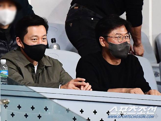 15일 서울 고척스카이돔, KBO리그 한국시리즈 2차전 두산과 KT 경기. 배우 이서진과 나영석 PD가 두산 관중석에서 경기를 지켜보고 있다. 고척=정재근 기자 cjg@sportschosun.com/2021.11.15/