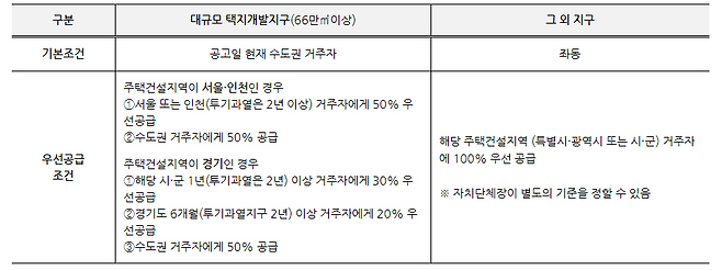 < 거주기간 및 우선공급 비율(본 청약 기준) >