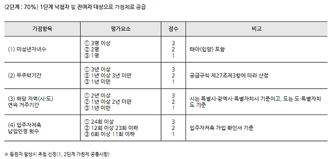 * 청약저축 가입 2년 이상 경과, 24회 이상 납입, 세대주, 5년이내 세대구성원 전체 다른 주택 당첨이력 없는 경우