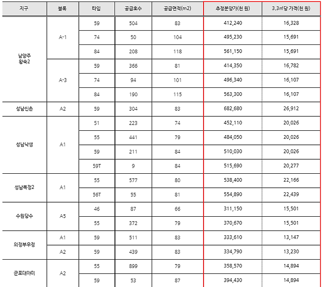 3. 2차 공급지구 추정분양가