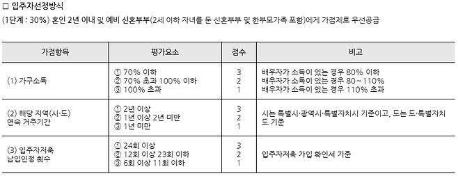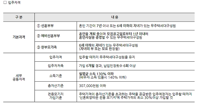 신혼희망타운 입주 자격 및 선정기준