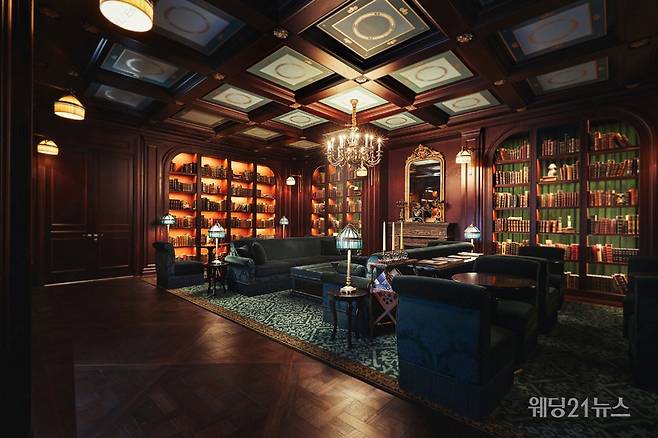 고풍스러운 파리의 살롱에서 영감을 받은 품격 있는 라이브러리 역시 웨딩 촬영 명소로 손꼽히는 것은 물론 많은 인플루언서에게 소문난 포토 스폿이다.