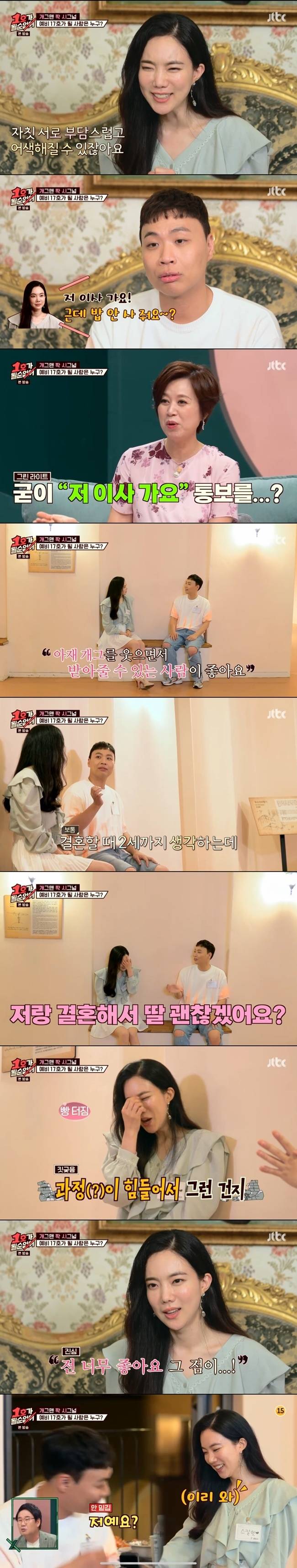 박미선은 "둘이 썸을 탈 뻔하다가 만 거냐. 이사 가는데 굳이 이사 간다고 말하냐"라며 놀랐고 박준형은 "나희가 먼저 (적극적이다)"라고 말했다.