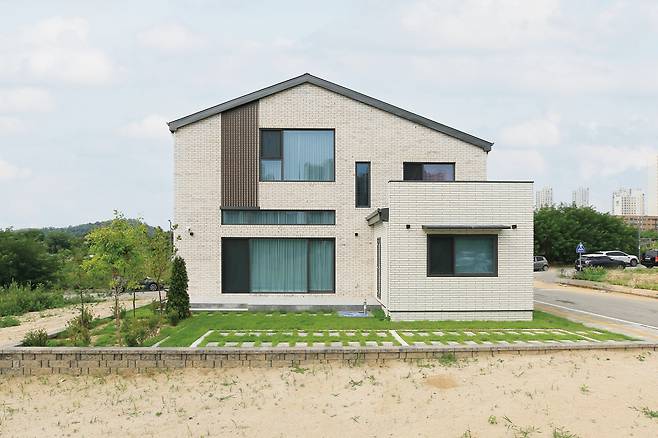 부지는 동쪽과 북쪽이 시원하게 열린 단지 코너에 있다. 건물은 북동쪽이 도로라 최대한 도로변에 건물을 붙이고, 남쪽에 마당과 주차장을 계획했다. 주요 공간 구성은 빛이 좋은 남쪽에 거실과 부모님 방을 두고, 오전 빛이 들어오는 동쪽에 자녀 방, 빛이 적게 들고 통풍이 좋은 북쪽에 주방과 다용도실을 배치했다. 방은 총 6개이며 남쪽에 있는 거실과 안방은 스킵플로어 방식으로 연결해 거실 천장을 높여 개방감을 확보하고 안방에 충분한 채광까지 살렸다. 동쪽과 서쪽에는 실 위에 데크와 테라스를 만들어 전망 좋은 가족의 휴식 공간을 만들었다.