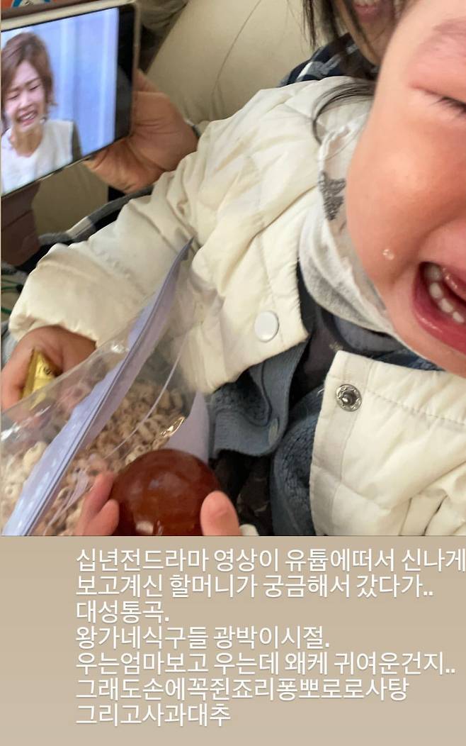 사진 속 이윤지의 딸 소울은 드라마에서 엄마가 우는 장면이 나오자 대성통곡하고 있는 모습.