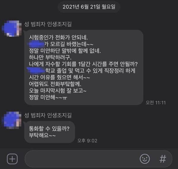 그는 "현재는 신고를 한 상태이고 그 사람의 자백도 받아냈다. 계속 친구 핑계를 대면서 한 번만 봐달라고 하더라"며 "어떻게 딸 있는 아버지가 그딴 짓을 할 수 있는지 아직도 소름이 끼친다. 반대로 자기 딸이 당해도 용서하라 말할 수 있을까"라고 토로했습니다.