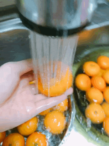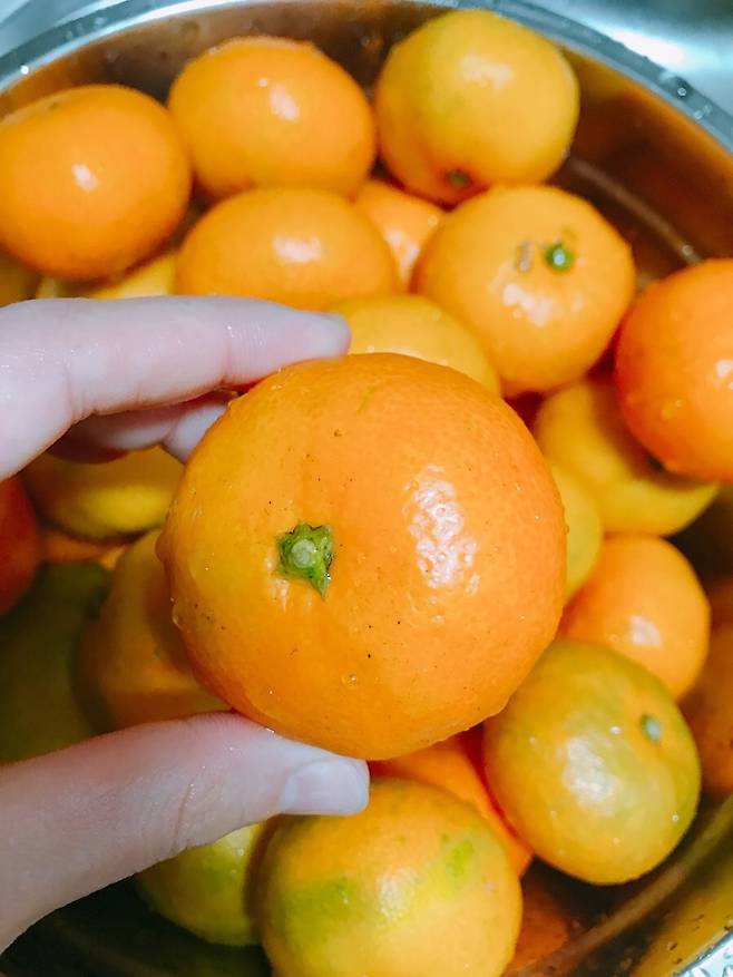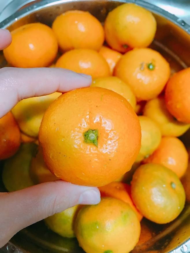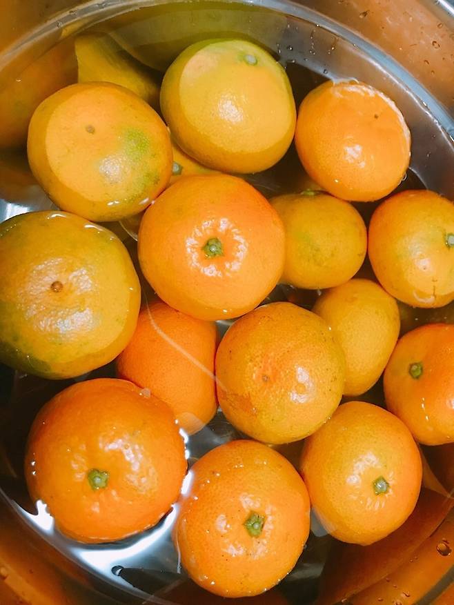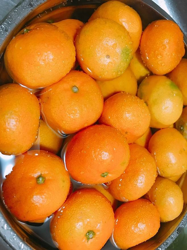 깨끗한 귤만 골랐으면, 그 다음 흐르는 물에 1~2번 헹궈줍니다.