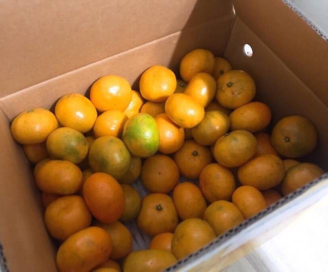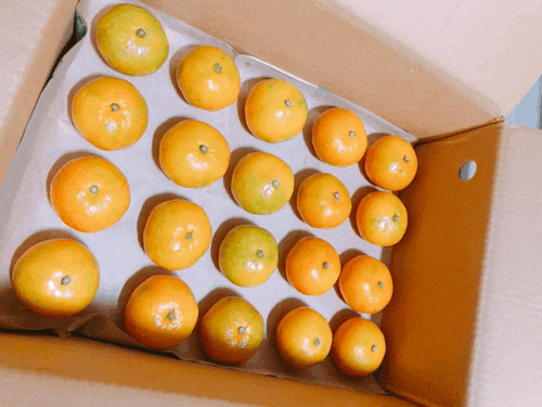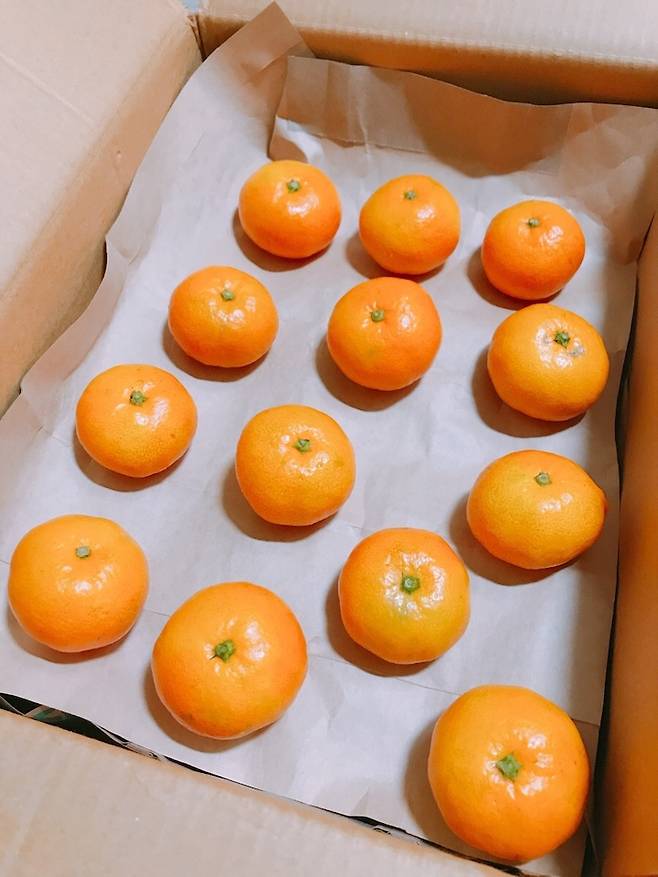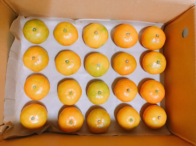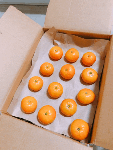 마지막으로 아까 종이를 깐 박스에 귤을 넣어주면 되는데요.