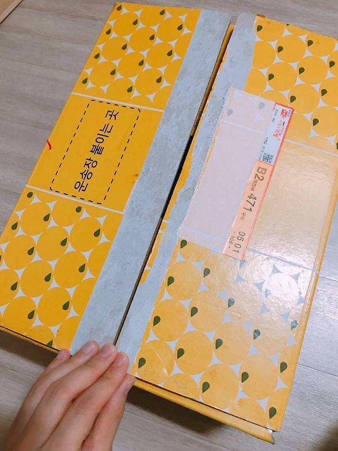 귤을 모두 쌓았으면 박스를 닫아 직사광선을 피해서 서늘한 베란다에 보관하면 끝!