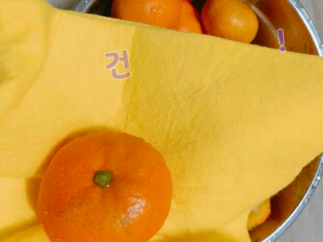 키친타월이나 마른 수건으로 귤에 묻은 물기를 제거해주면 90% 완성 !