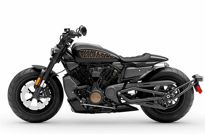 이번 신형 스포스터의 첫 모델의 이름은 스포스터 ‘S’다. 전 세계적으로 높은 인기를 누린 포티에잇의 도톰한 전륜 디자인을 따오고 플랫트랙 레이서인 XR750의 연료탱크와 시트로 이어지는 라인에서 차체 전반의 분위기를 가져왔다. 외형상 상당히 콤팩트해 보이는 연료탱크지만 11.8리터로 쓸만한 용량은 확보하고 있다. 높게 장착된 배기 시스템이나 스윙암 마운트 방식의 번호판 브래킷 등 멋부린 요소들이 많다.