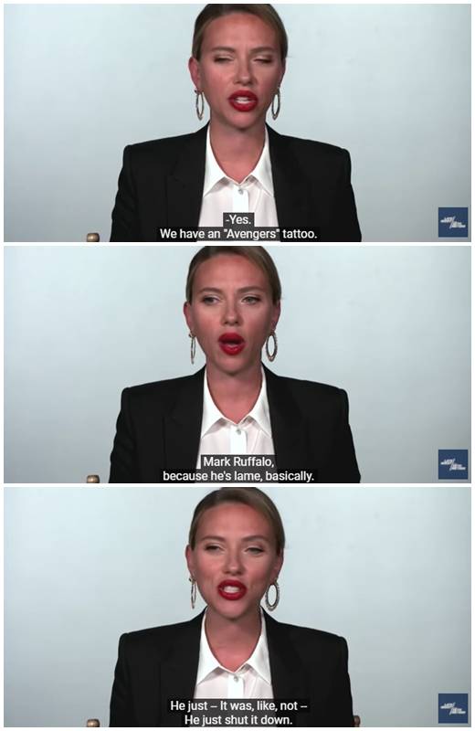 그는 “스칼렛 요한슨의 아이디어로 ‘어벤져스’ 문신을 했는데, 마크 러팔로만 하지 않았다”고 말했다.