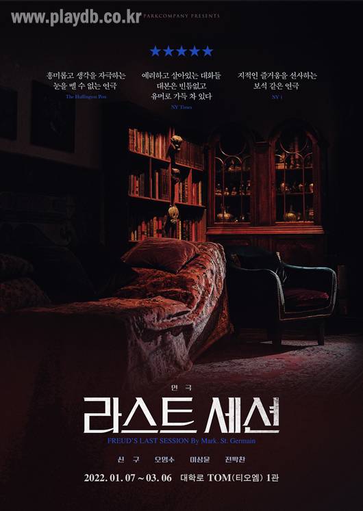 <라스트 세션>은 미국 극작가 마크 세인트 저메인이 책 '루이스 vs. 프로이트'(아맨드 M. 니콜라이)에서 영감을 얻어 쓴 작품으로 영국이 독일과 전면전을 선포하며 제2차 세계대전에 돌입한 1939년 9월 3일을 배경으로 무신론자 '지그문트 프로이트'(1856~1939)와 기독교 변증가 'C.S. 루이스'(1898~1963)가 직접 만나 논쟁을 벌인다는 상상에 기반한 작품이다. 오영수 배우는 신구 배우와 함께 프로이트를, 이상윤과 전박찬이 C.S. 루이스를 함께 연기한다.