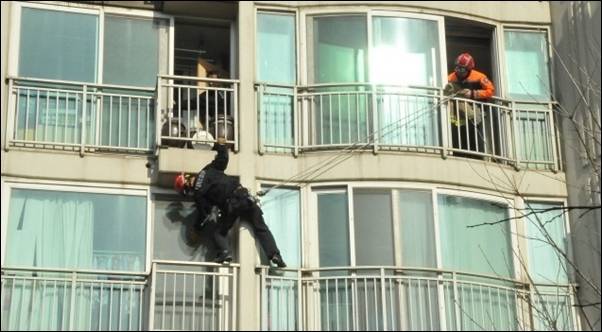 결국, 소방관은 옥상이나 아파트 위층에 올라가 로프를 설치해 창문 등을 통해 진입합니다. 더 안전하게 구조할 수 있지만, 손해 보기 싫다는 이기심 때문에 목숨을 내걸고 구조 작업을 펼칩니다.