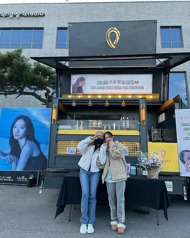 사진 속에는 블랙핑크 지수와 보나가 커피차 앞에서 인증샷을 찍는 모습이 담겨 있었는데요. 평소에도 함께 다정한 투샷을 올리며 우정을 과시해온 두 사람은 9등신 비율과 함께 완벽한 미모를 자랑해 부러움을 샀습니다.