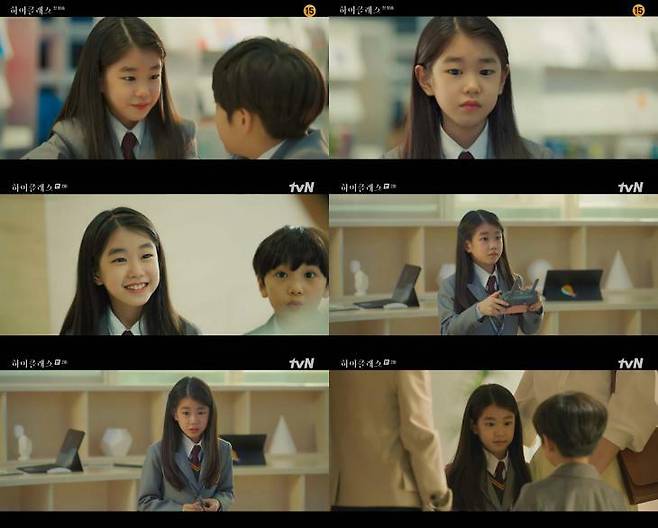 이전 작품에서 성인 배우들과 자연스러운 호흡을 맞춘 경력이 있어서 이번에도 좋은 연기력을 보여준 그녀지만, <하이클래스>에서는 또래의 아역 배우들과 함께 학교에서 함께 호흡을 맞추는 모습을 보여줘 보기 좋다는 반응이다.