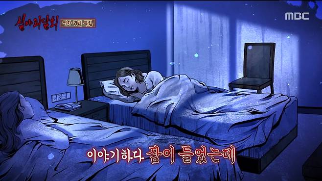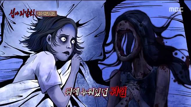 이어 "빈 의자에 형태가 보였다. 검은 색인데 팔을 괴고 날 바라보고 있더라. 얼굴은 뻥 뚫려 있었다. 너무 놀라 소리를 질렀다. '언니! 내 뒤에 귀신있어!'라고 했더니 언니가 옆에 와서 달래주고 같이 잠들었다. 그런데 뒤에서 또 '잠들었어?' 묻는 거다. 근데 언니가 왔으니까 '이제 잠든 것 같아'라며 뒤를 돌았더니 그 귀신이 제 옆에 와서 누워있었다. 소리치고 난리치고 했다"고 회상했다.