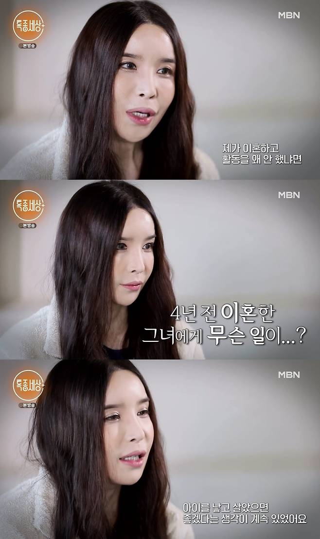 더불어 전 남편 미키정과 이혼 후 활동을 중단했던 이유에 대해서는 "사람들이 다 이혼에 대한 것만 물어보더라. 자꾸 포커스가 그쪽으로만 가니까, 다들 짖궂은 거 같다"고 전했다.